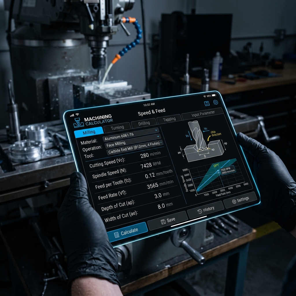 Calculate optimal spindle speed and feed rate for any material and tool. Built by our CNC team.