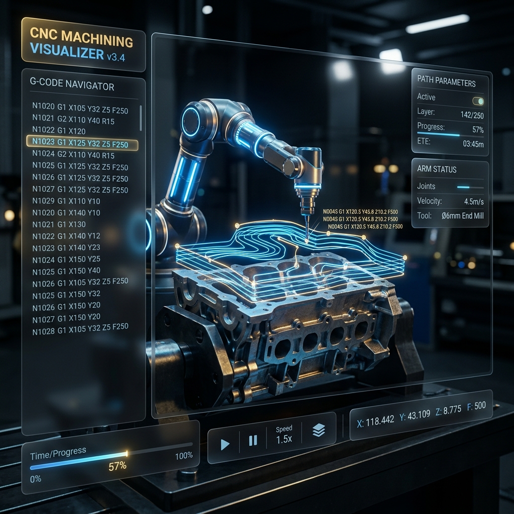 Paste any G-code and watch it render in 3D before you ever touch the machine. Catches crashes before they happen.